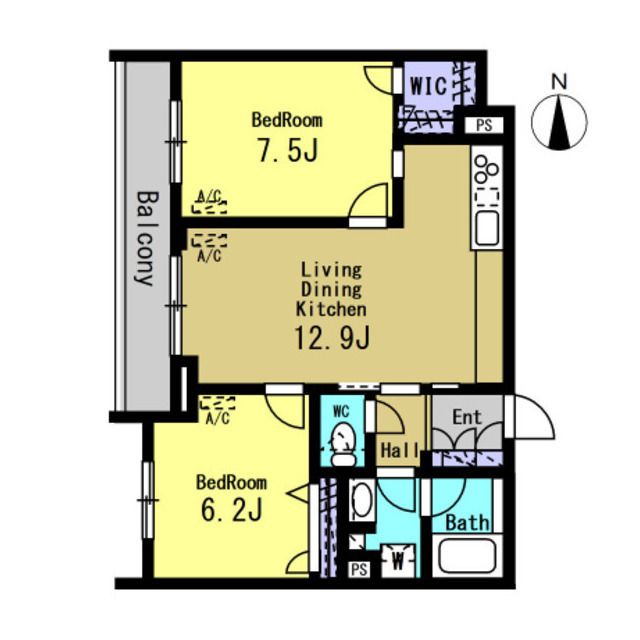 | 築年月 | 2025年1月 | 間取り | 2LDK( LDK12.9畳/洋室7.5畳/洋室6.2畳 ) | 専有面積 | 58.55m2 |