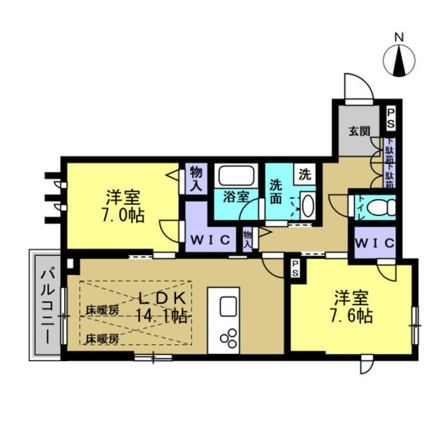 | 築年月 | 新築 | 間取り | 2LDK( LDK14.1畳/洋室7.6畳/洋室7畳 ) | 専有面積 | 71.64m2 |