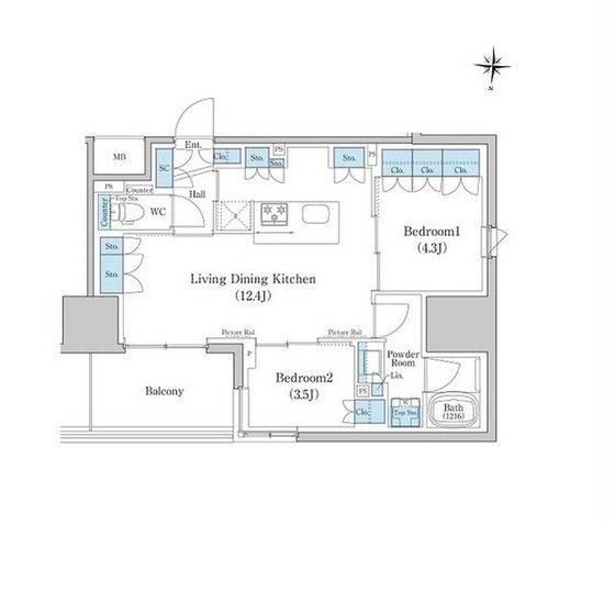2LDK( 洋室4.3畳/洋室3.5畳/LDK12.4畳 ) |