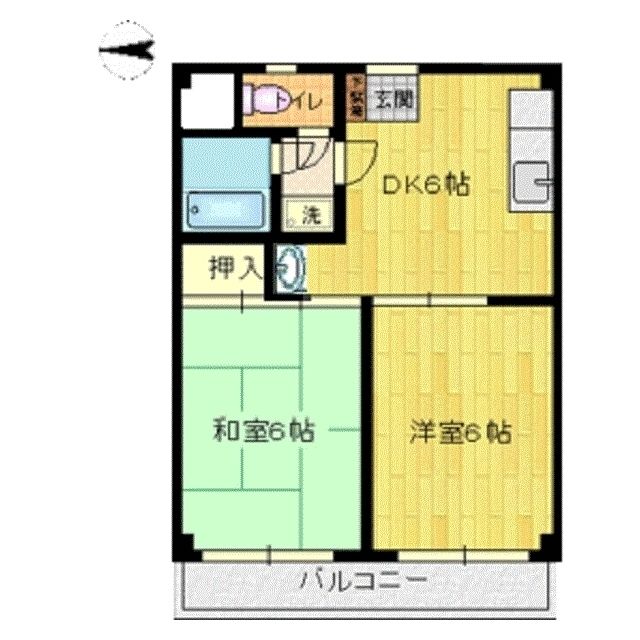 | 築年月 | 1994年6月 | 間取り | 2DK( 和室6畳/洋室6畳/DK6畳 ) | 専有面積 | 38.88m2 |