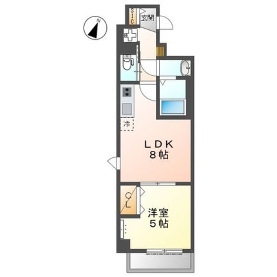 | 築年月 | 2021年12月 | 間取り | 1LDK( LDK8畳/洋室5畳 ) | 専有面積 | 34.53m2 |