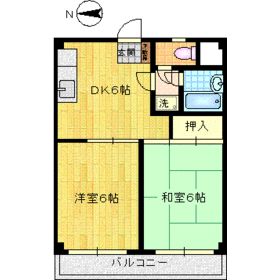 | 築年月 | 1994年6月 | 間取り | 2DK( 和室6畳/洋室6畳/DK6畳 ) | 専有面積 | 38.88m2 |