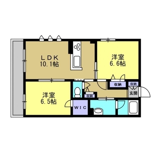 | 築年月 | 2019年10月 | 間取り | 2LDK( LDK10.1畳/洋室6.6畳/洋室6.5畳 ) | 専有面積 | 54m2 |