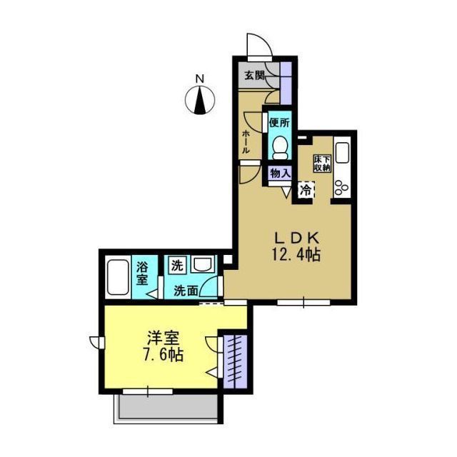 | 築年月 | 2015年10月 | 間取り | 1LDK( LDK12.4畳/洋室7.6畳 ) | 専有面積 | 47.21m2 |