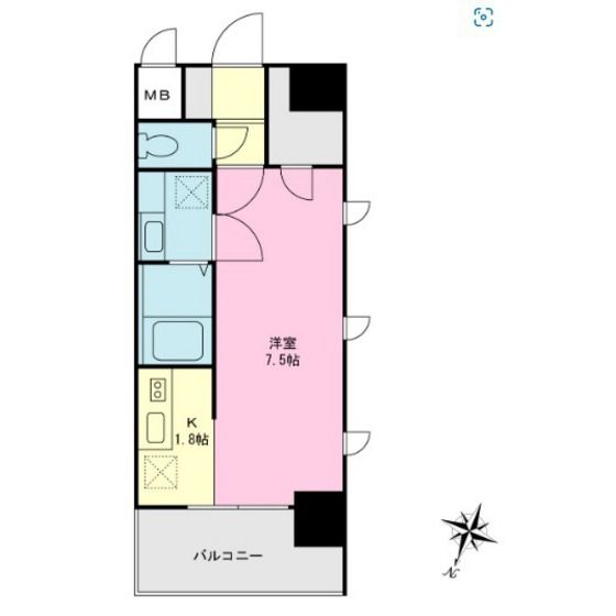 | 築年月 | 2020年3月 | 間取り | 1K( K1.8畳/洋室7.5畳 ) | 専有面積 | 25.02m2 |